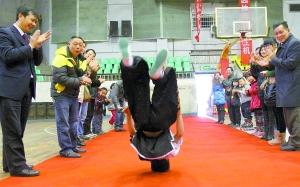 One of the few in the audience, there is a little boy wearing roller shoes, he is challenging handspring last November to carrying the flag of the Dragon Imperial successful world record. His father, Long Xiao Kui yesterday took him to a specialist Zhao Hang cheer, but also big enough to witness the production of another world record。