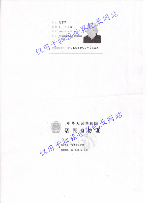 Chengdu Fu Suqing reporting success stories: the world's oldest woman(Hits: )