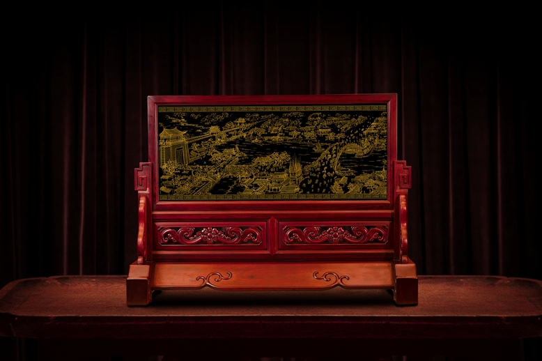 World Record Title: The "Riverside Scene at Qingming Festival" (part) gold inlaid with jade "wrong gold and silver" decoration created by Mr. Zhang Guowang from Huachang Jewellery Co., Ltd. is the largest one in area in the world.
