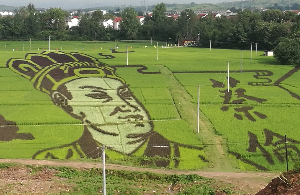World Record Holder: The paddy rice art piece of Cai Lun's bust in the Rural Complex of Longting Town, Yang County, Shanxi Province.