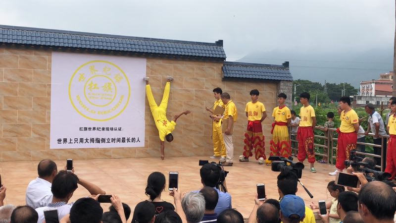World Record Holder: Mr. Wu Zhuoqiu is the person who standing upside down on one’s thumbs for the longest time in the world.