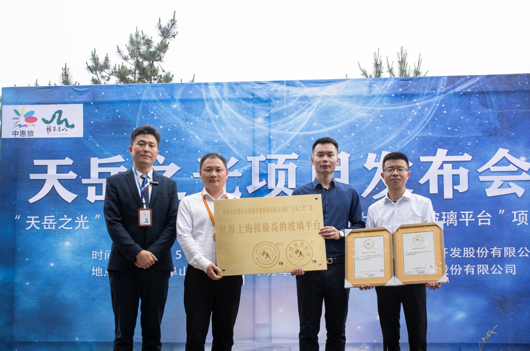 World Record Title: The "Tianyue Light" of Hunan Tianyue Mufushan Tourism Development Corp. is the highest glass platform in the world.
