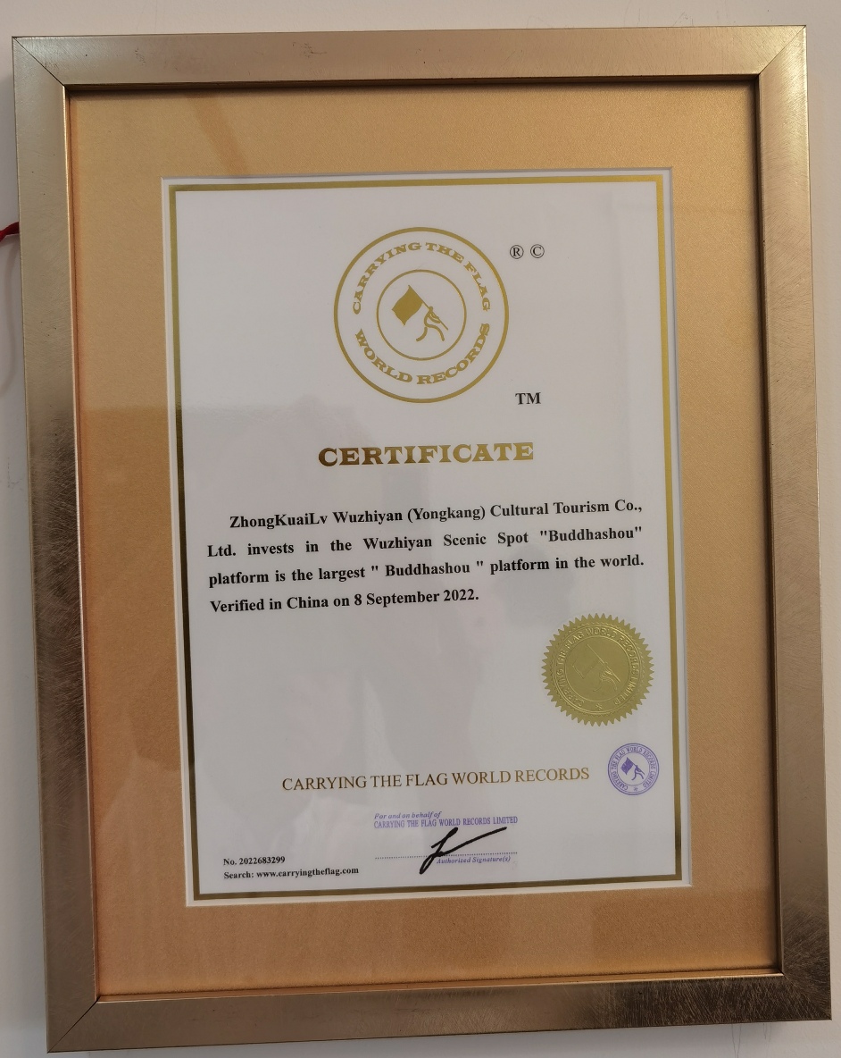 World Record Title: ZhongKuaiLv Wuzhiyan (Yongkang) Cultural Tourism Co., Ltd. invests in the Wuzhiyan Scenic Spot "Buddhashou" platform is the largest " Buddhashou " platform in the world.