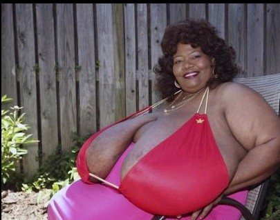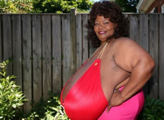 The world's largest natural breasts Owner: Norma Siti Si Breast weight 40 lbs (18 kg)。